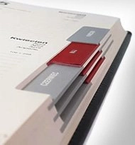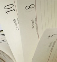 Opcje dodatkowe | zaokrąglone narożniki bloku i okładki kalendarza, registry 4 rzędowe wycięte |