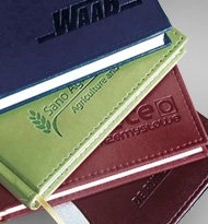 Zewnętrzna oprawa w naszych kalendarzach dziennych w formacie a5 to wizytówka Państwa firmy. To pierwsze wrażenie decyduje jak zostanie odebrana Wasza firma, właśnie przez pryzmat samego kalendarza. Powinniśmy skupić się na zindywidualizowanej okładce oraz odpowiednim materiale oprawy. Popularnym rozwiązaniem jest materiał skóropodobny, który można zmodyfikować do własnych potrzeb. Mamy możliwość wygrawerowania czy wytłoczenia na nim naszego logo. Sam materiał jest ekskluzywny i właśnie tak chcemy by firma była odbierana. Posiadamy szeroki wybór opraw skóropodobnych dla terminarzy.